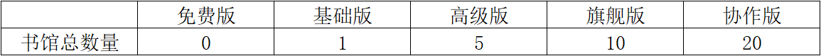 注意:不同賬號會員版本的可創建書館總數量不同,具體看下表: