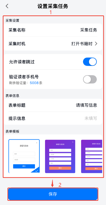 允許跳過:允許讀者不填寫信息,直接跳過查閱書本。