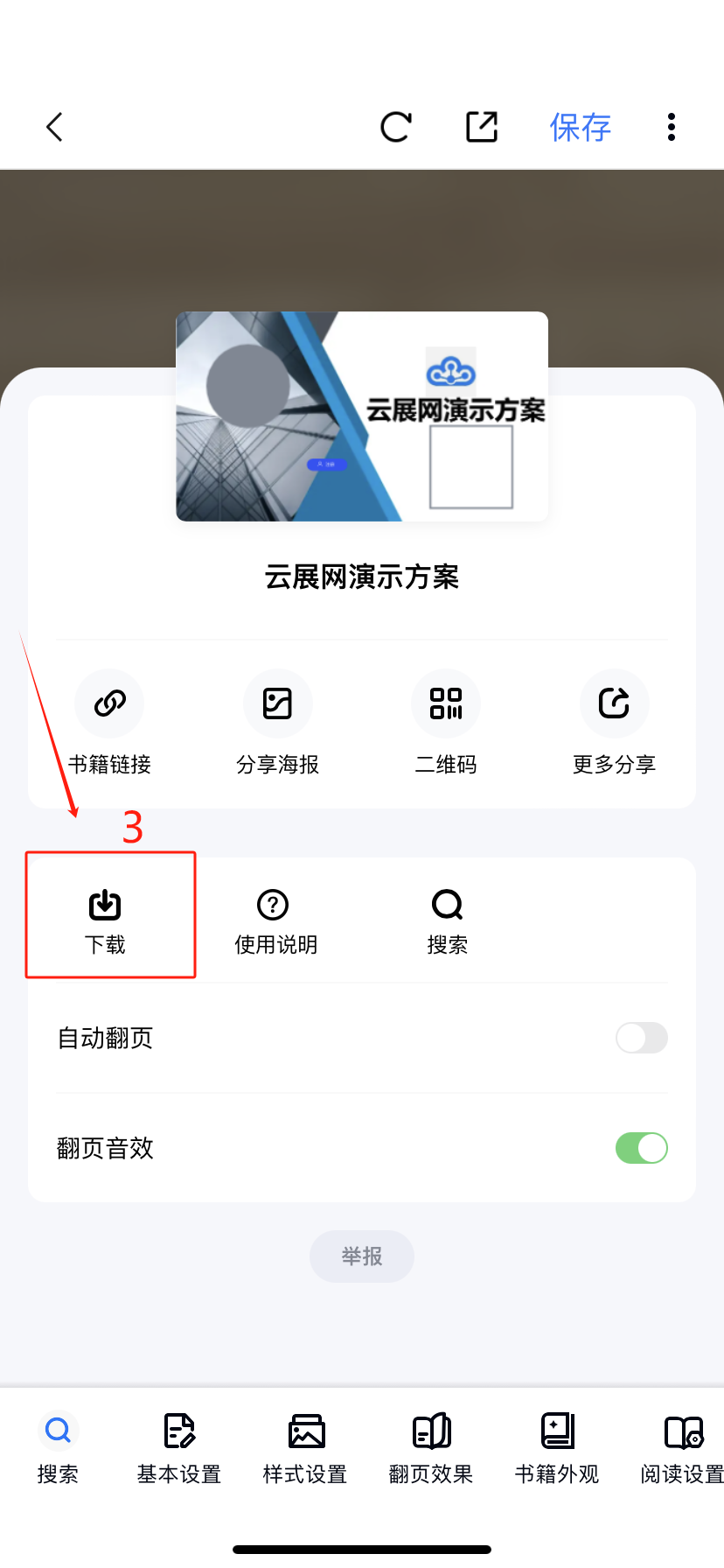 設(shè)置好后點擊右上角的【保存】,然后點擊工具欄上的【…】按鈕,點擊【下載】按鈕即可下載書本文件