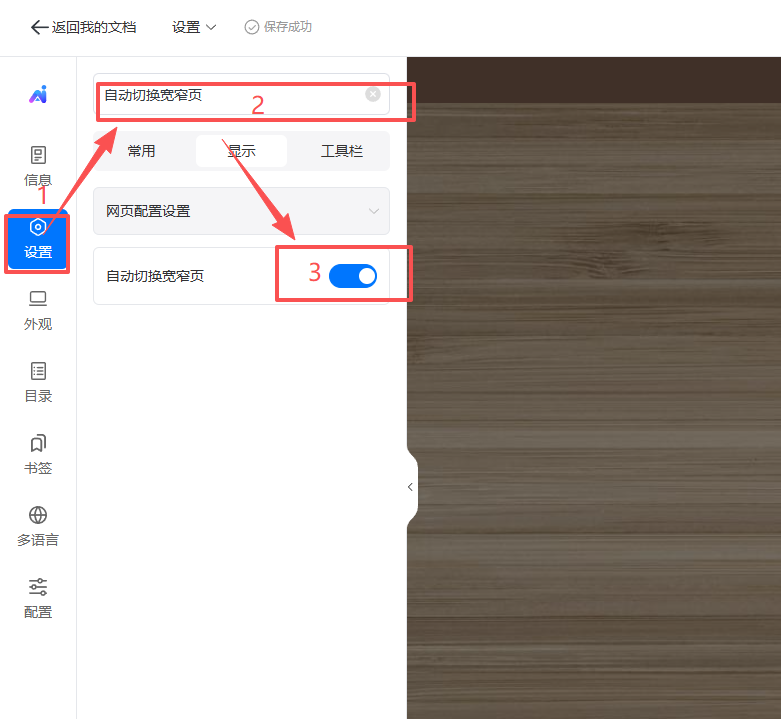 點擊【設置】,在搜索欄輸入“自動切換寬窄頁”查找,勾選【自動切換寬窄頁】。