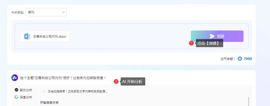 點擊【創建】→ 等待AI分析文件并生成大綱內容
