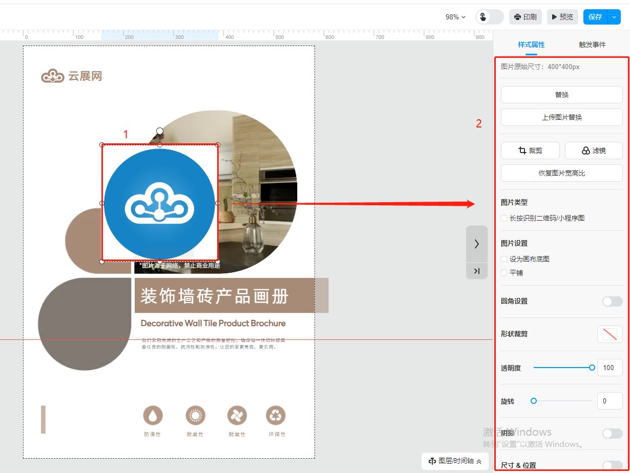 點擊頁面上的圖片,在右側設置樣式屬性。