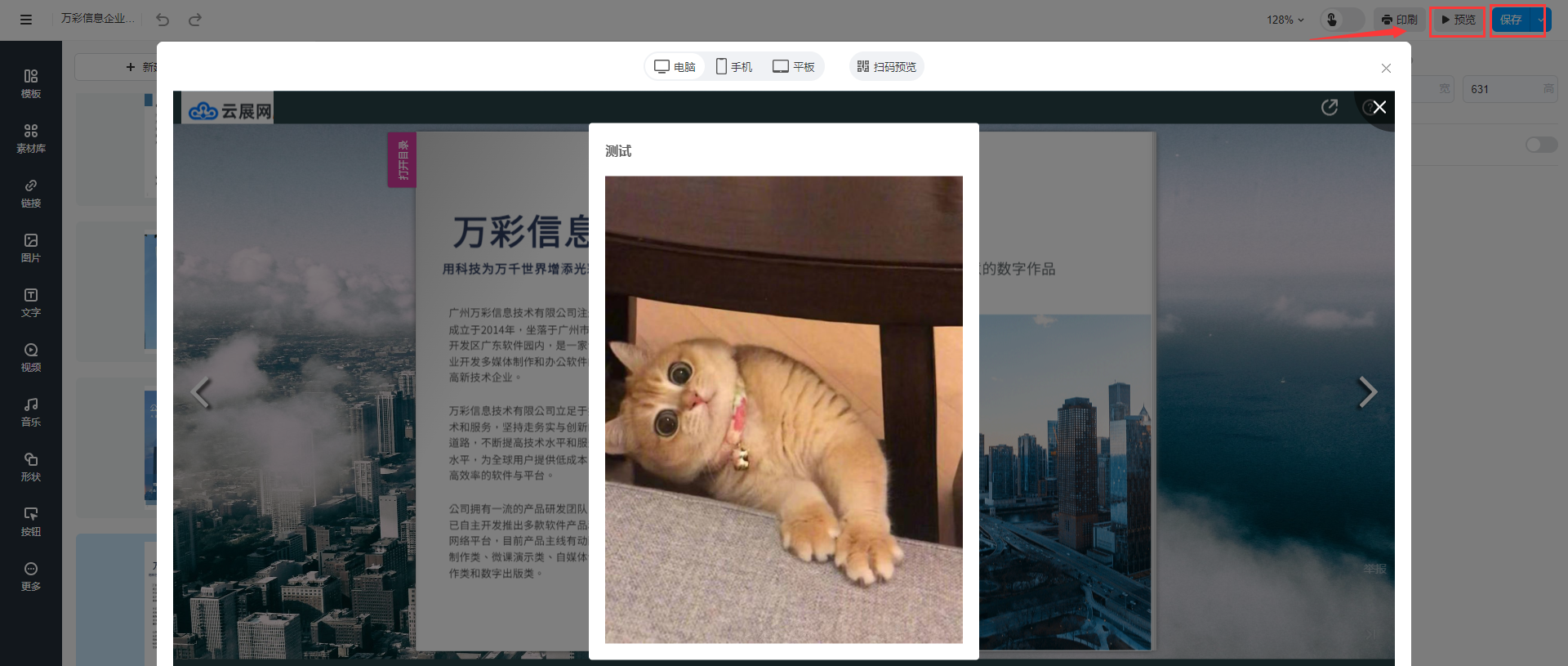 設置好以后點擊右上角的【保存】,點擊【預覽】查看效果