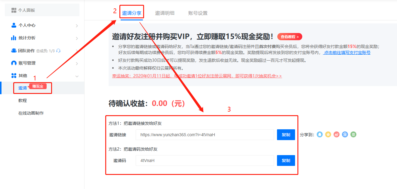 把邀請鏈接或者邀請碼發給需要購買會員的人注冊云展網賬號,讓他在注冊的時候務必填寫您的邀請碼,或者打開您的邀請鏈接注冊。