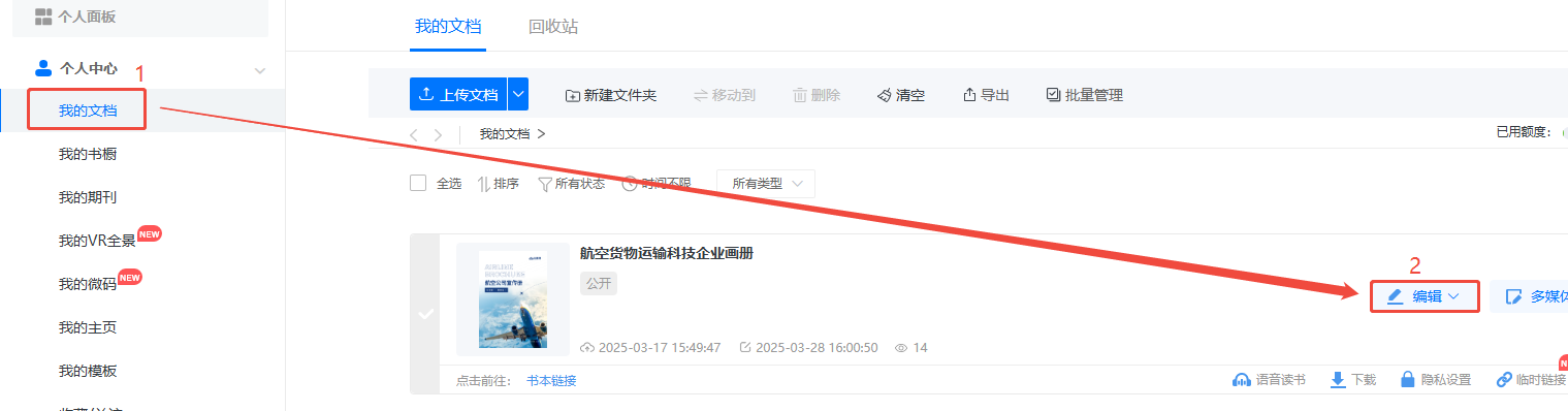 點擊【我的文檔】,然后點擊【編輯】,打開編輯界面。