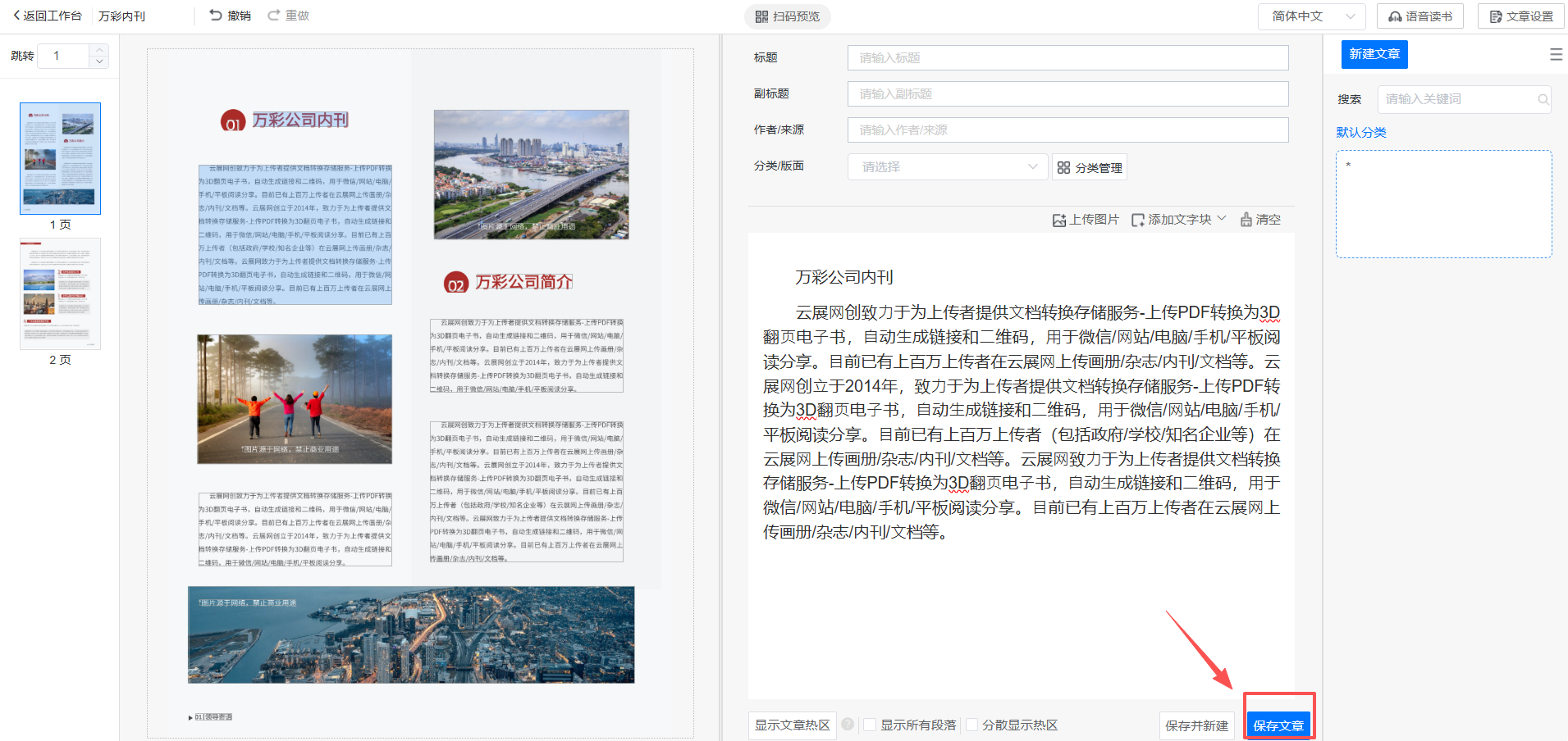 提取文章,就是把書本上每篇文章單獨提取出來作為一個新的頁面展示,可以直接分享該篇文章,并且讀者看著會更清晰。有助于SEO搜索引擎的收錄。特別適用于期刊,報刊這種文字篇幅比較多的書本。
