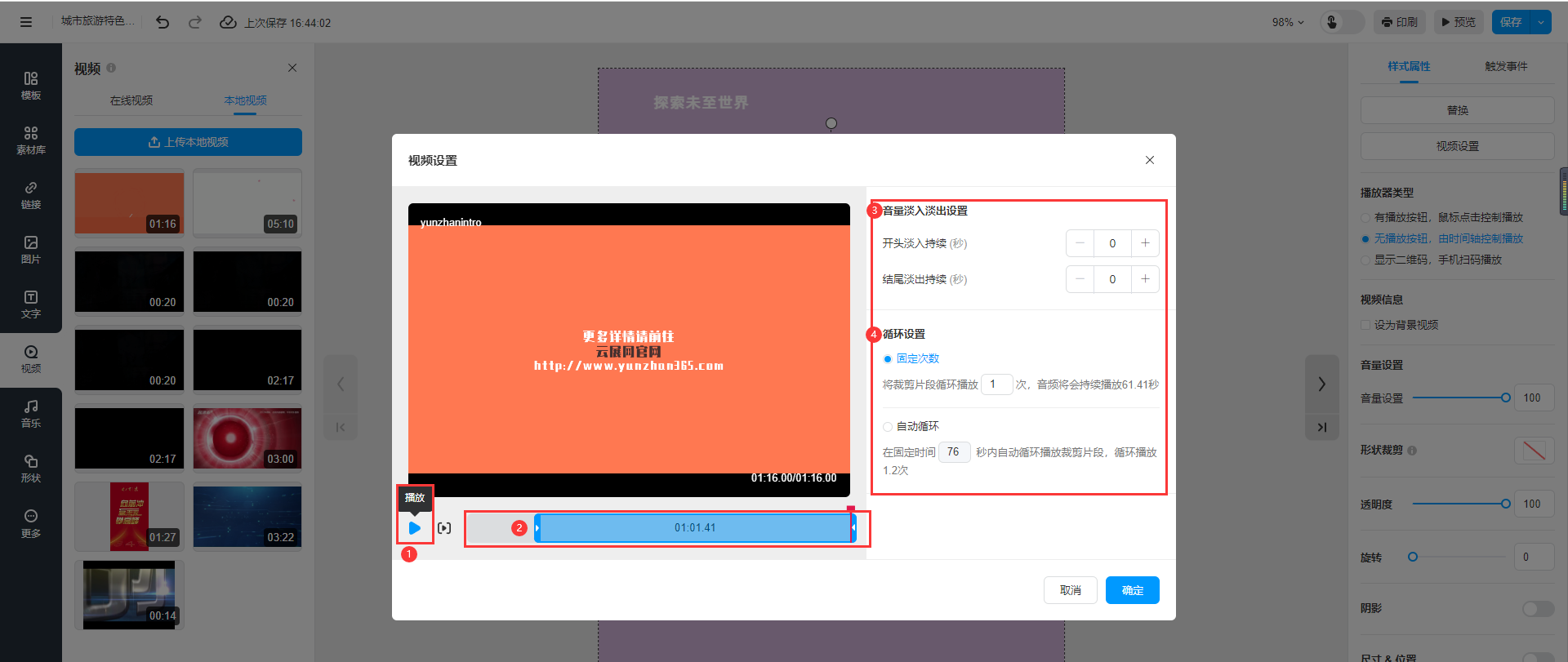 ③音量淡入淡出設置:視頻的音樂淡入淡出持續時間