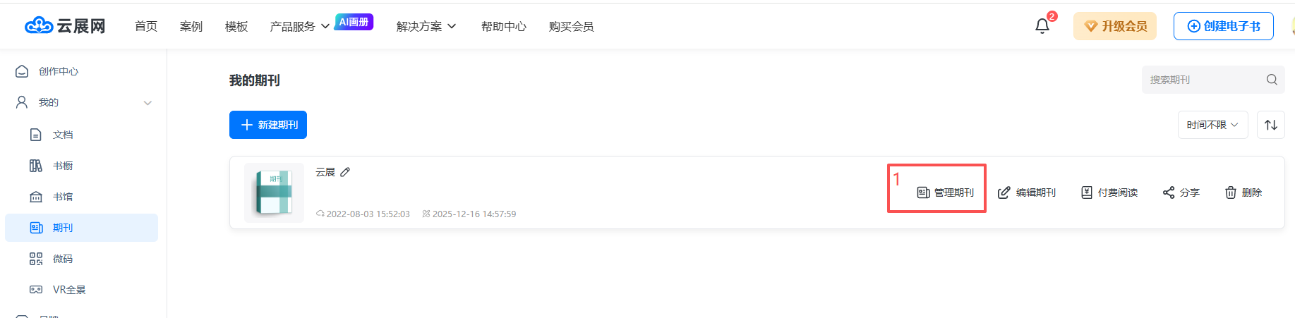 (1)點擊【管理期刊】進入,然后點擊【新建刊物】