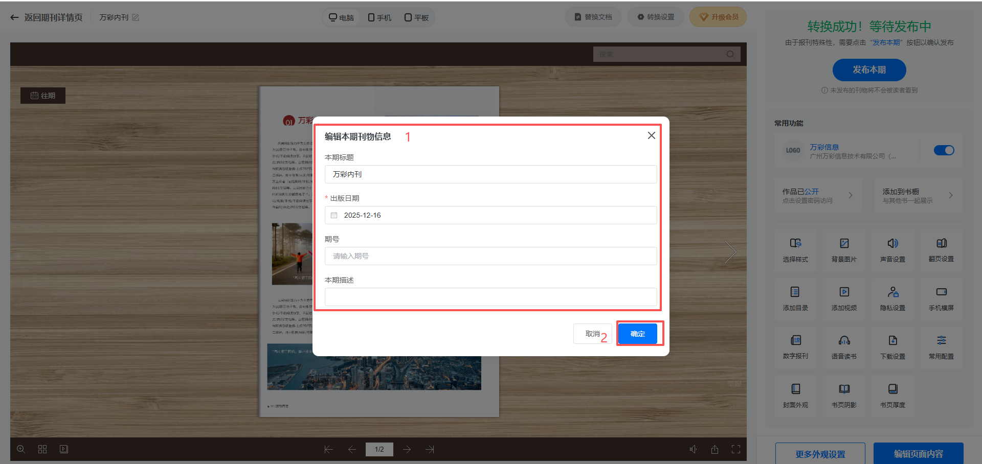 (3)設置刊物信息,設置好后點擊【發布本期】發布。