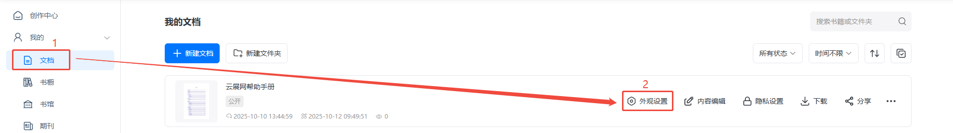 在【文檔】找到需要設置的電子畫冊,點擊【外觀設置】進入。