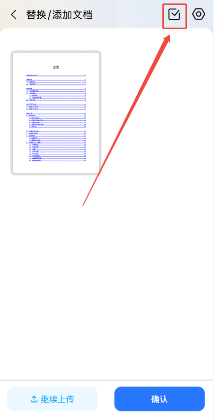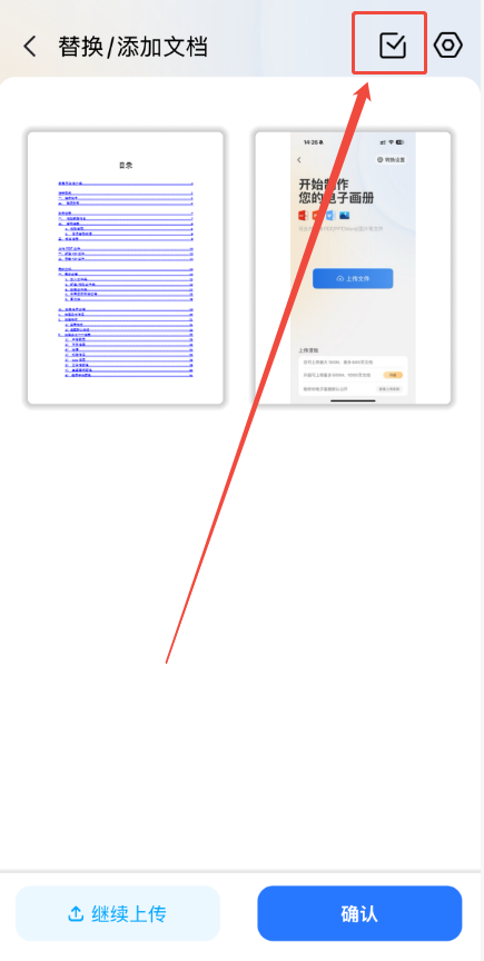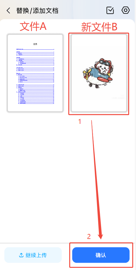b)點擊左下角【繼續上傳】上傳新文件后,點擊確認即可。