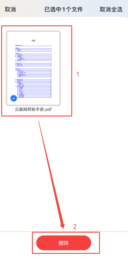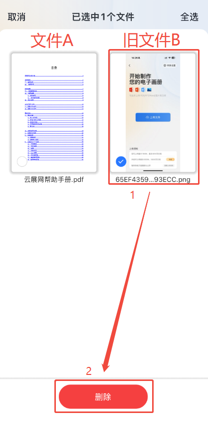 a)點擊右上角選擇按鈕,勾選舊文件,點擊【刪除】,將舊文件刪除掉。