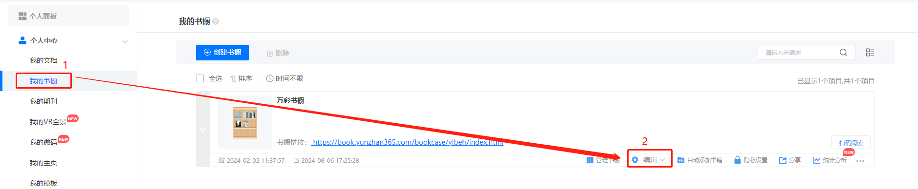 (1)點擊【我的書櫥】找到對應書櫥,點擊【編輯】,進入編輯界面。