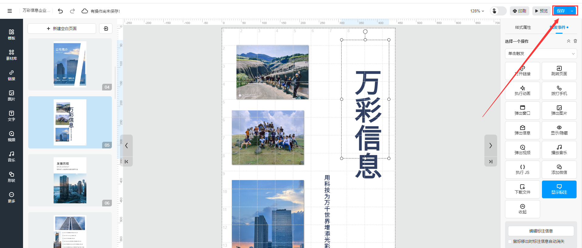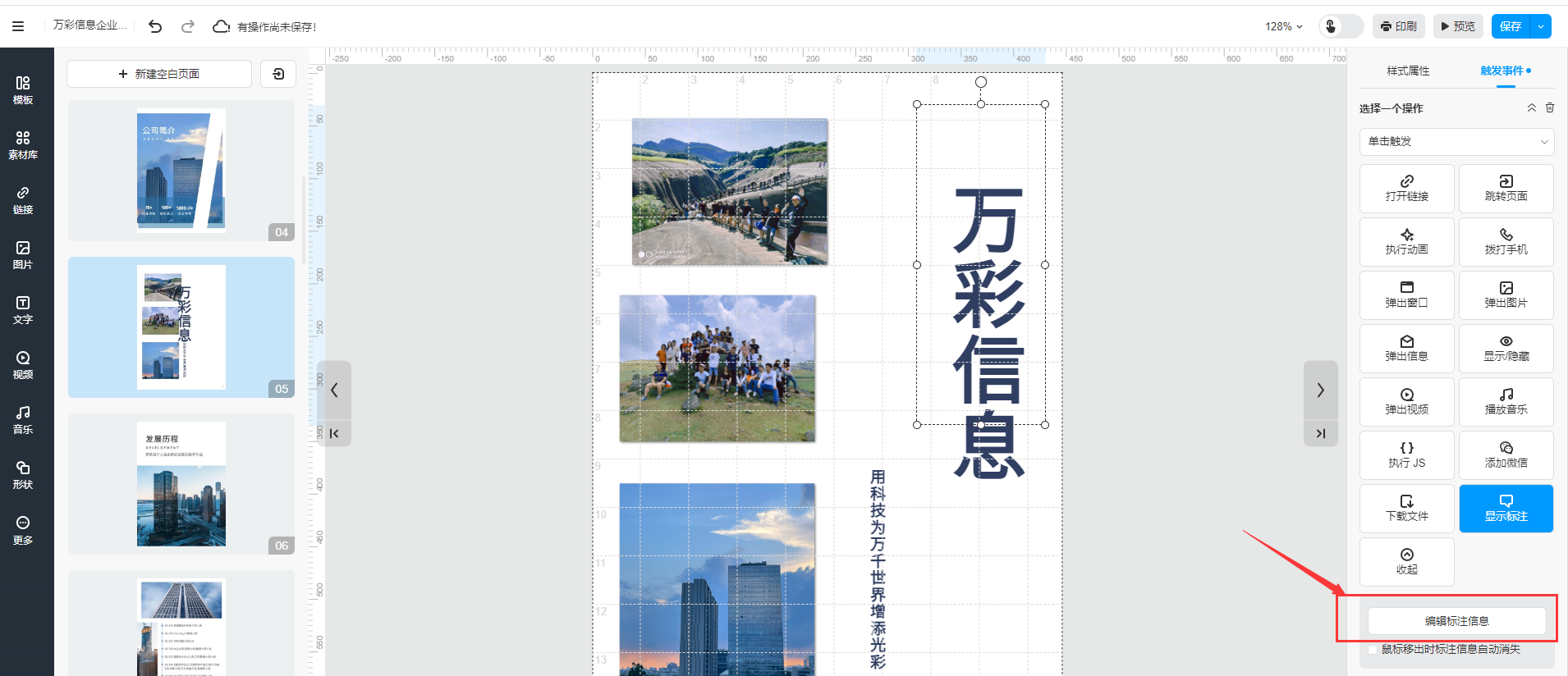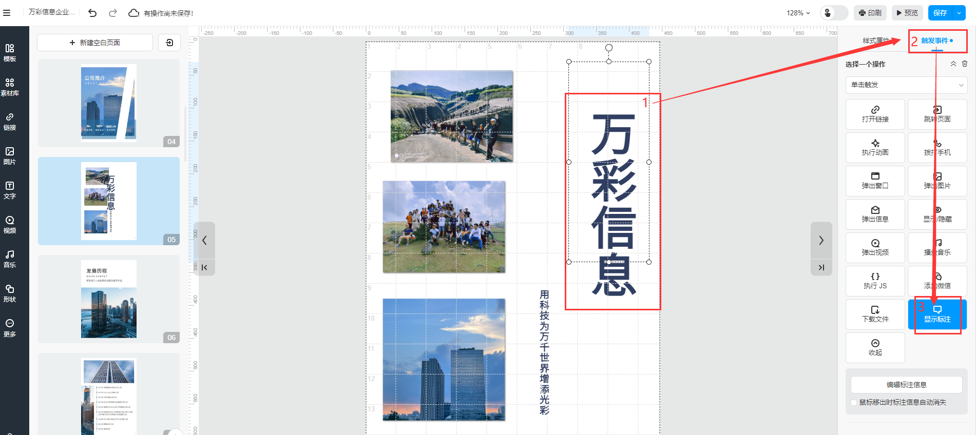 選擇圖片/文字/圖標,點擊【觸發事件】,對其設置【顯示標注】功能