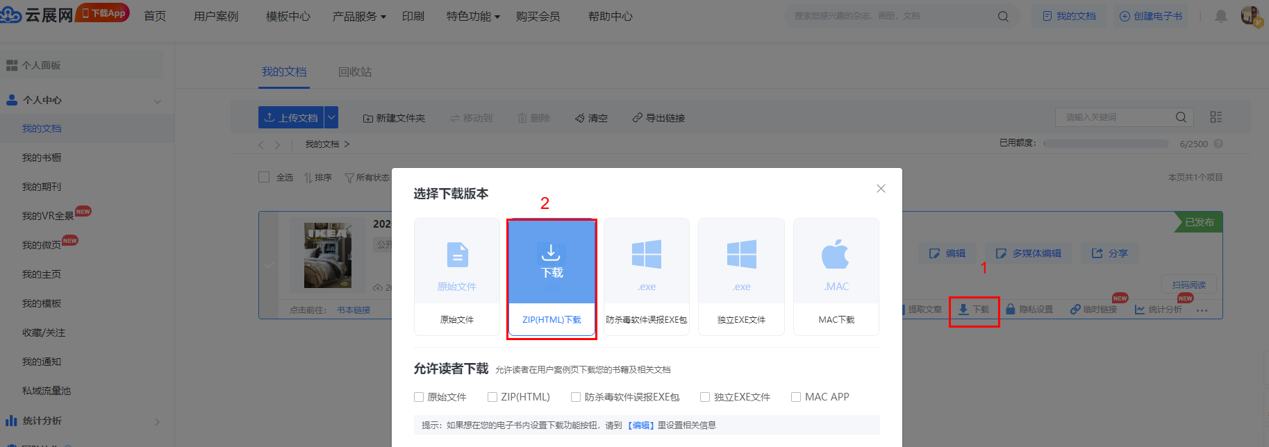 方法二:付費會員可以下載自己上傳的雜志上傳到自己的網站服務空間使用。