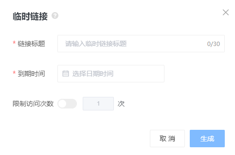 2、配置“鏈接標題”輸入分享的鏈接名稱,如:“XX產品畫冊”接著設置“到期時間”“限制訪問次數”完成后點擊生成。