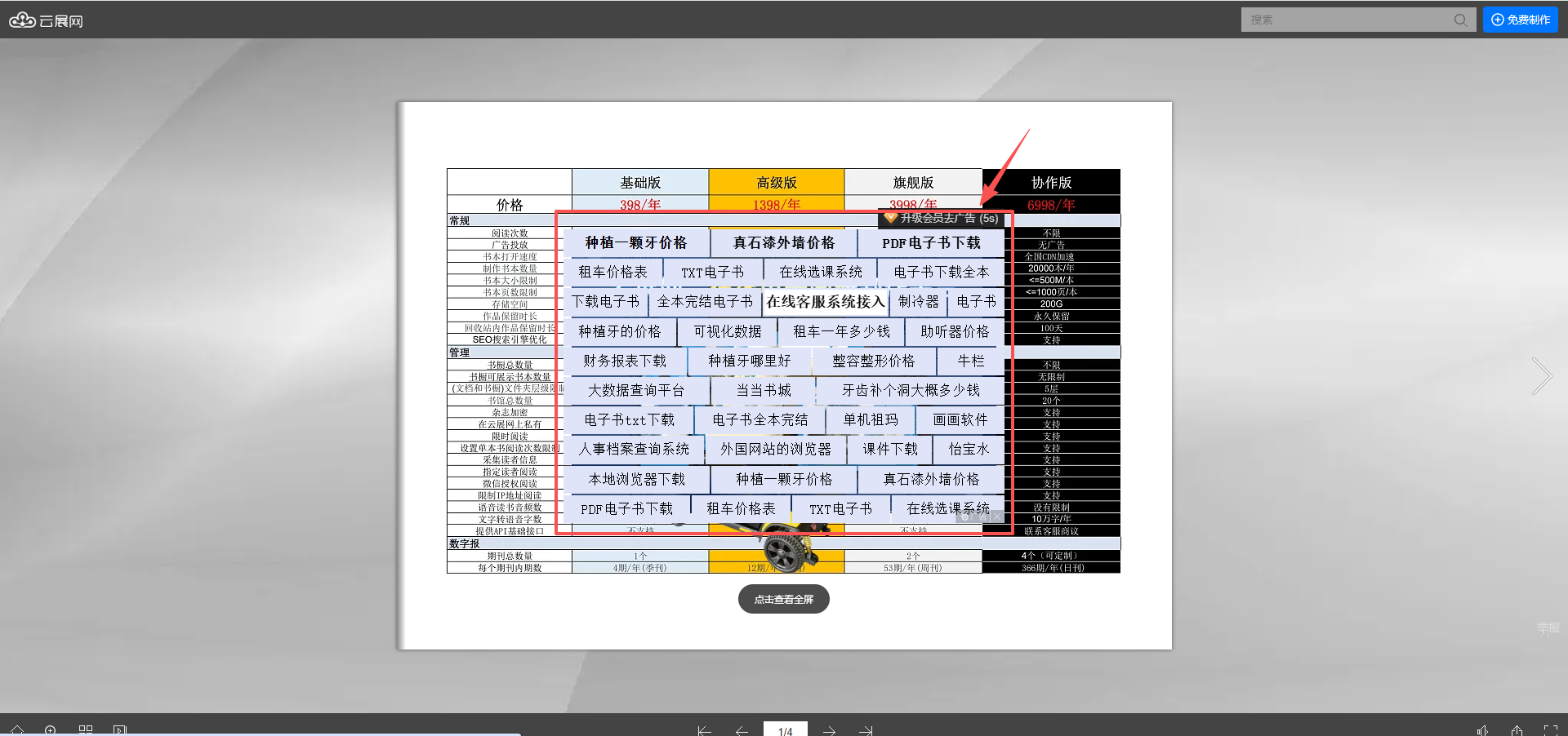 云展網廣告是什么樣子?如何去除廣告?