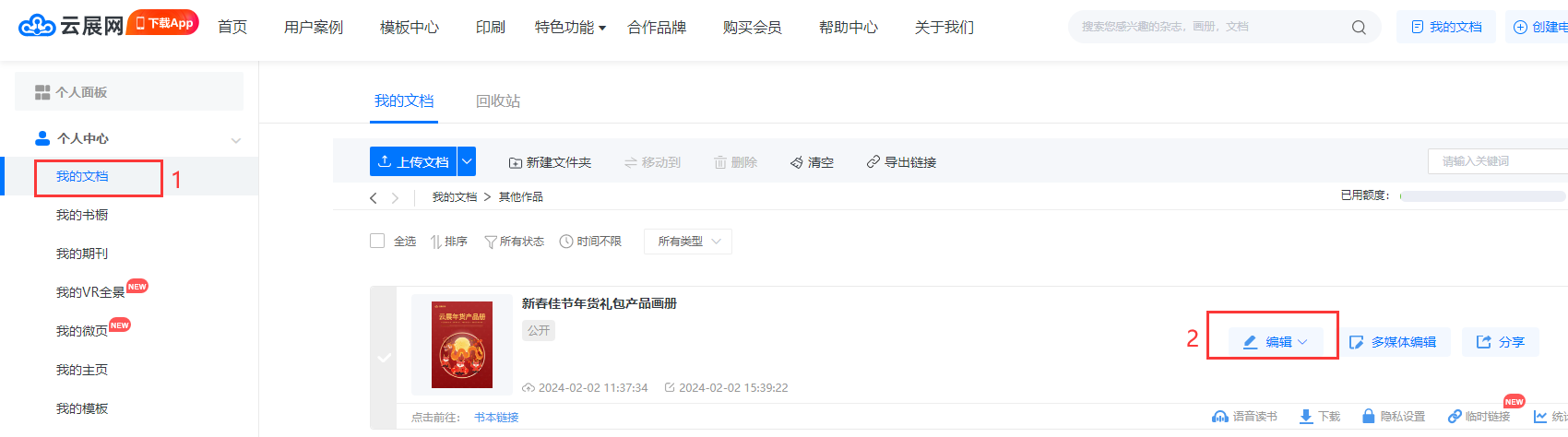 在【我的文檔】頁面,點擊【編輯】進入編輯頁面