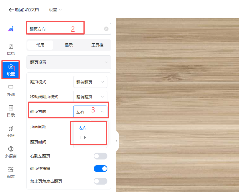 云展網默認的書籍效果都是左右翻頁效果,另外可以自定義選擇上下翻頁以及左右滑頁效果。