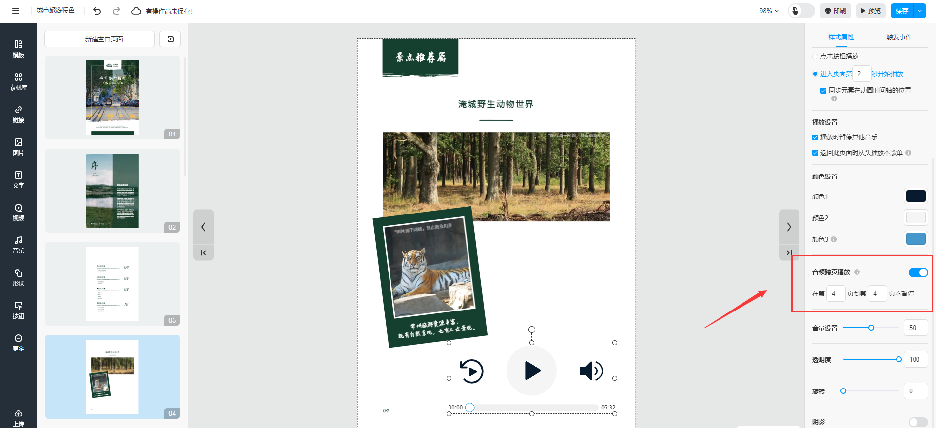 勾選后,根據你的需求,輸入需要播放音樂的頁數范圍,此音頻將在指定頁數內播放,翻到指定頁數外會自動暫停。