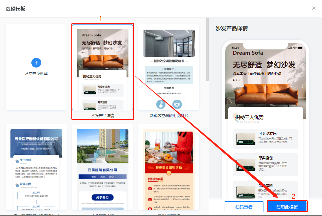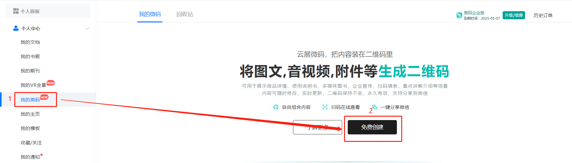 如何快速創建微碼 一、功能介紹 如果想要快速制作出一份精美的微碼,可以套用模板制作,云微頁有專業設計師團隊,持續設計上新精美模板,改個字換張圖,即可輕松做出好頁面。 二、操作步驟 1、創建微碼 點擊【我的微碼】,然后點擊【免費創建】。 2、選擇模板 點擊選擇一個模板,點擊右下角【使用此模板】。 3、更換圖片 選中圖片,點擊【換圖】,即可更換自己的圖片。 4、修改文字 點擊書中文字,即可修改文字。 5、保存 點擊右上角【保存】。