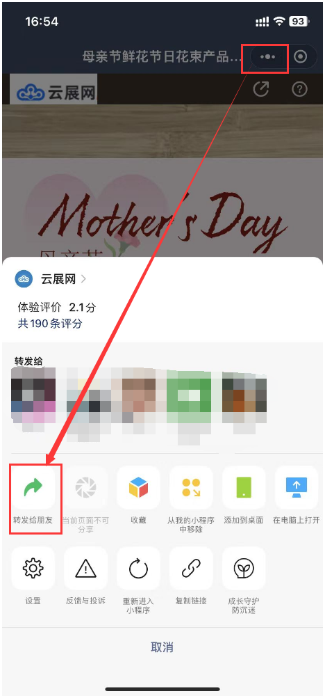 2)微信掃描小程序二維碼后直接分享給好友
