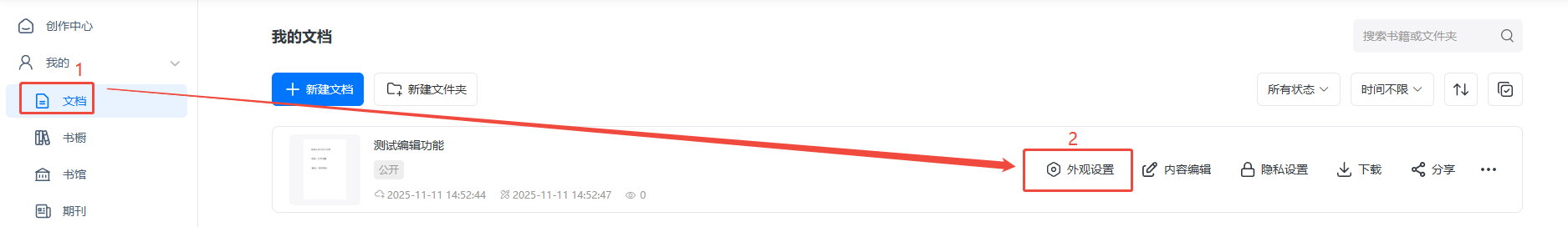 (1)點擊【外觀設(shè)置】,打開書本編輯頁面