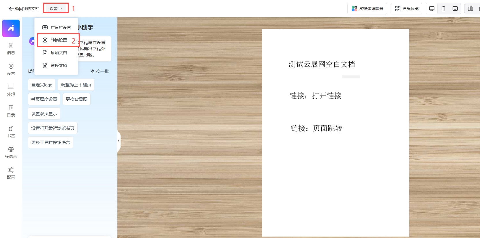 如果文檔本身清晰,但是在云展網(wǎng)上傳轉(zhuǎn)換以后模糊的話,可以設(shè)置如下三個選項來進行調(diào)節(jié)。