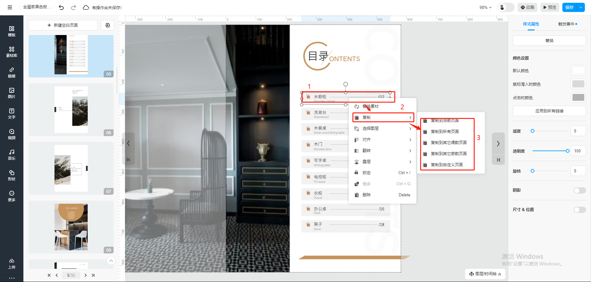 選中書中需要復(fù)制的元素,右鍵點(diǎn)擊【復(fù)制】,選擇需要復(fù)制到的頁面。